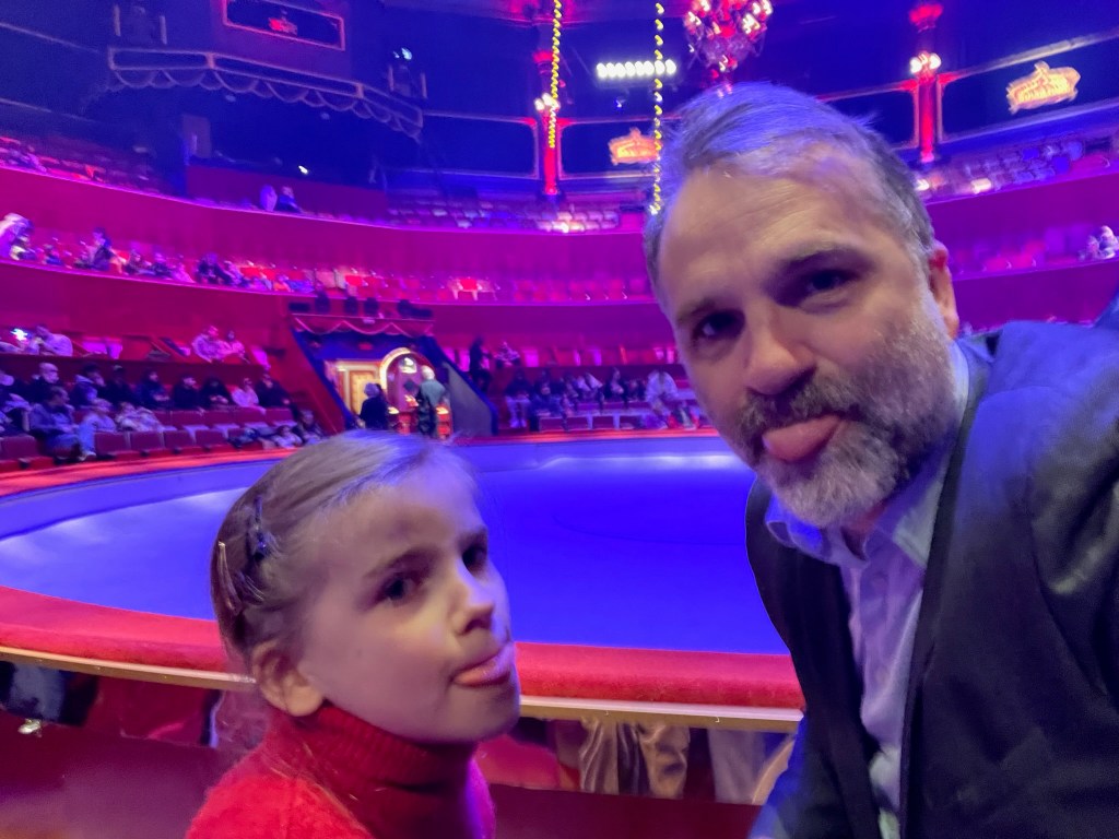 Ce matin, Dad m’a emmenée au cirque Bouglione. Il y avait Titi qui voulait demander avec Ariol mais il n’osait pas lui danser devant tout le temps. Ariol dansait tout le monde avec Ramono. Au cirque, le clown cloque. Il y a l’écuyère qui danse sur son cheval blanc qui mange du flan à l’éléphant avec ses dents.