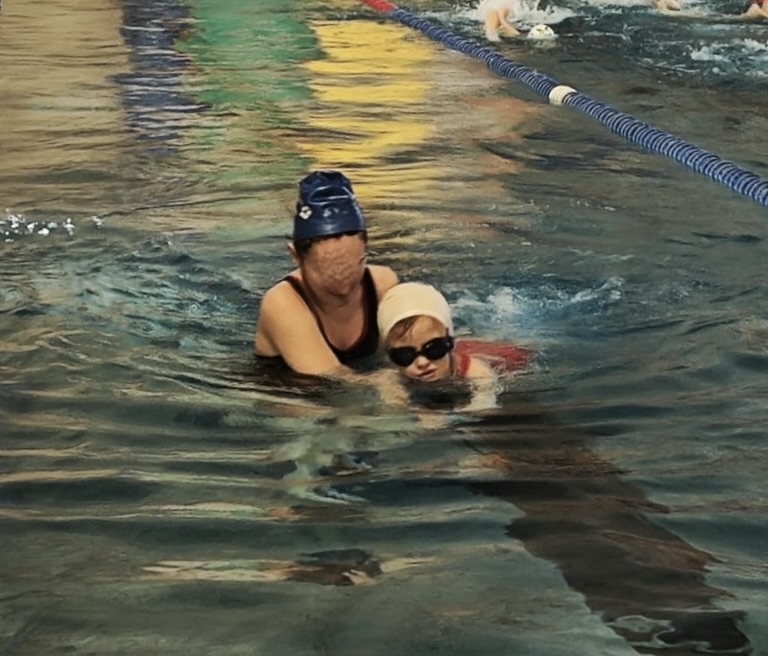Vendredi, j’ai su nager dans la piscine avec Zoé qui me noie ! Je vais nager dans la piscine d’Adriers.