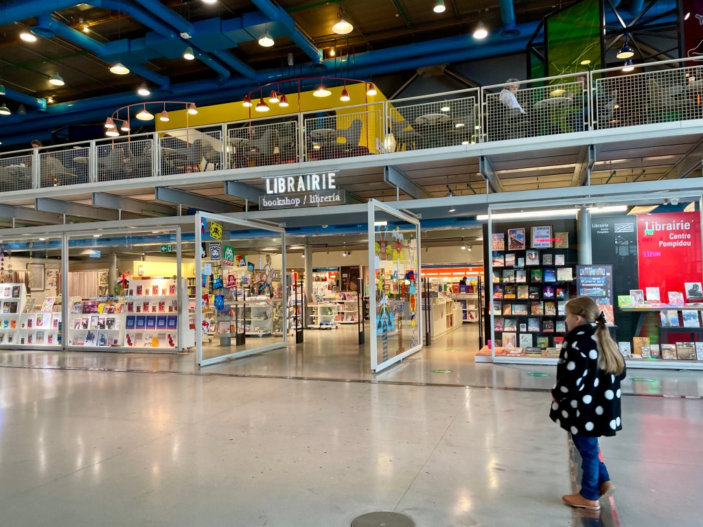 Je me dirige vers la librairie du centre pompidoudou. J’ai acheté un livre des petits philiscopes et une carte postale qui représente des fleurs pour envoyer à mon arrière grand-mère.