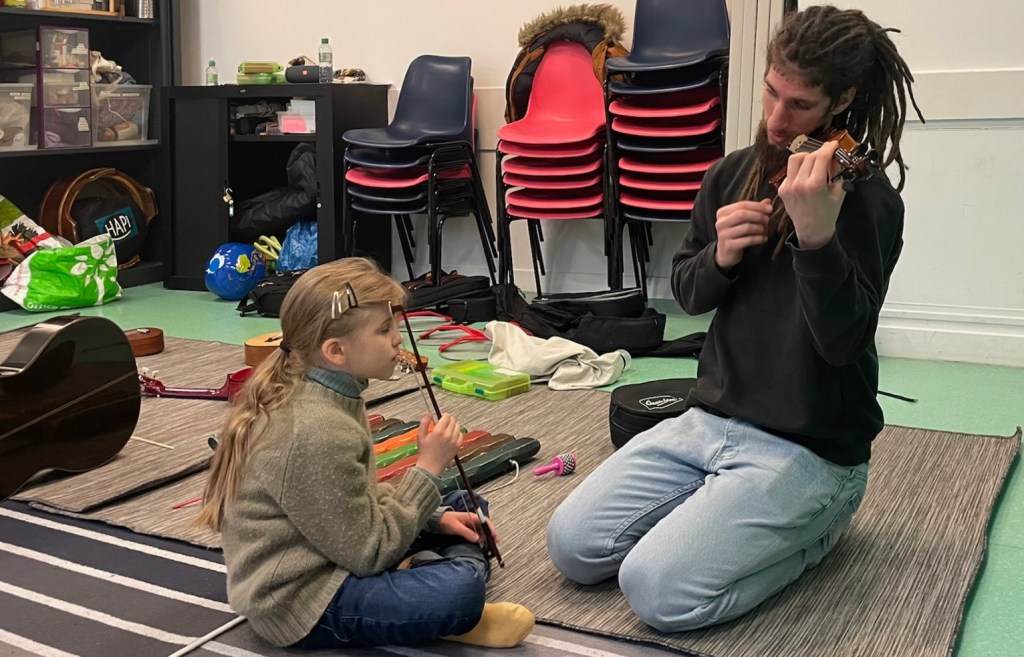 Nathan est mon professeur de musique. Je vais chez lui tous les samedis. Et il m’apprend le violon et on voit les notes s’envoler.