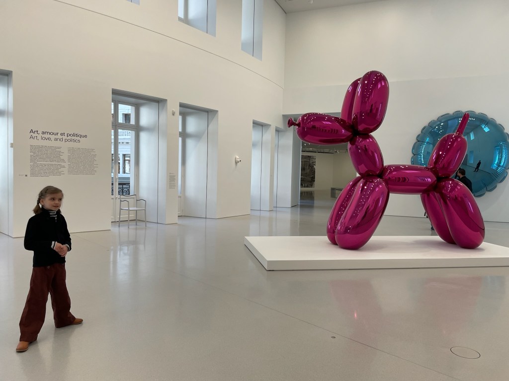 Je suis à la Bourse du Commerce où j’ai vu un chien en ballon rigolo. Il y a aussi un ballon d’hélium.