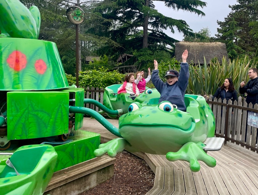 Je suis dans une grenouille manège qui s’appelle le Kiddie Spin. La grenouille saute partout comme un petit lapinou perdu dans ses petites pensées de sagesse caribou.