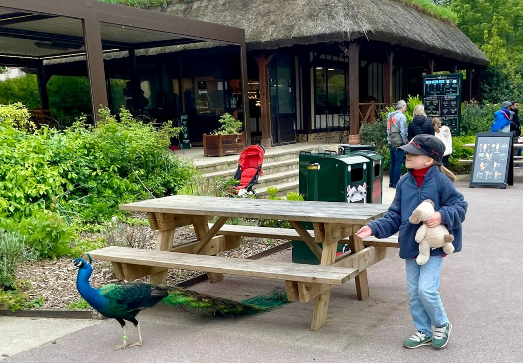 Je pourchasse un paon avec un chien qui s’appelle Cafetière. Le paon ne perd pas l’envie de s’en aller en courant et en abandonnant ses jolies plumes multicolores qui sentent la nougatine aux croquettes pour chiens. Ce paon a peur des humains et des chiens aussi, même en peluche, en plastique, en bois, à roulettes ou à bascule !