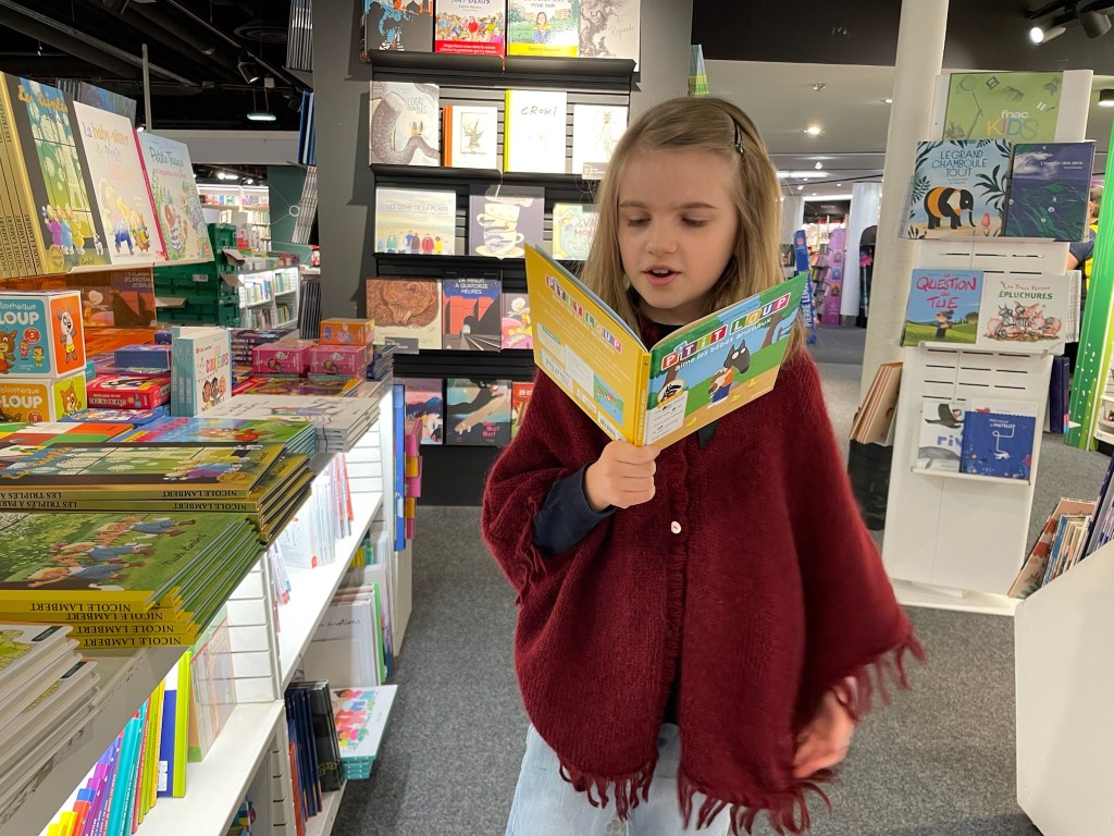 Je lis un livre à la Fnac. Il y a des Nino dino et des P’tit Loup, des journaux et des photos dans un bungalow.