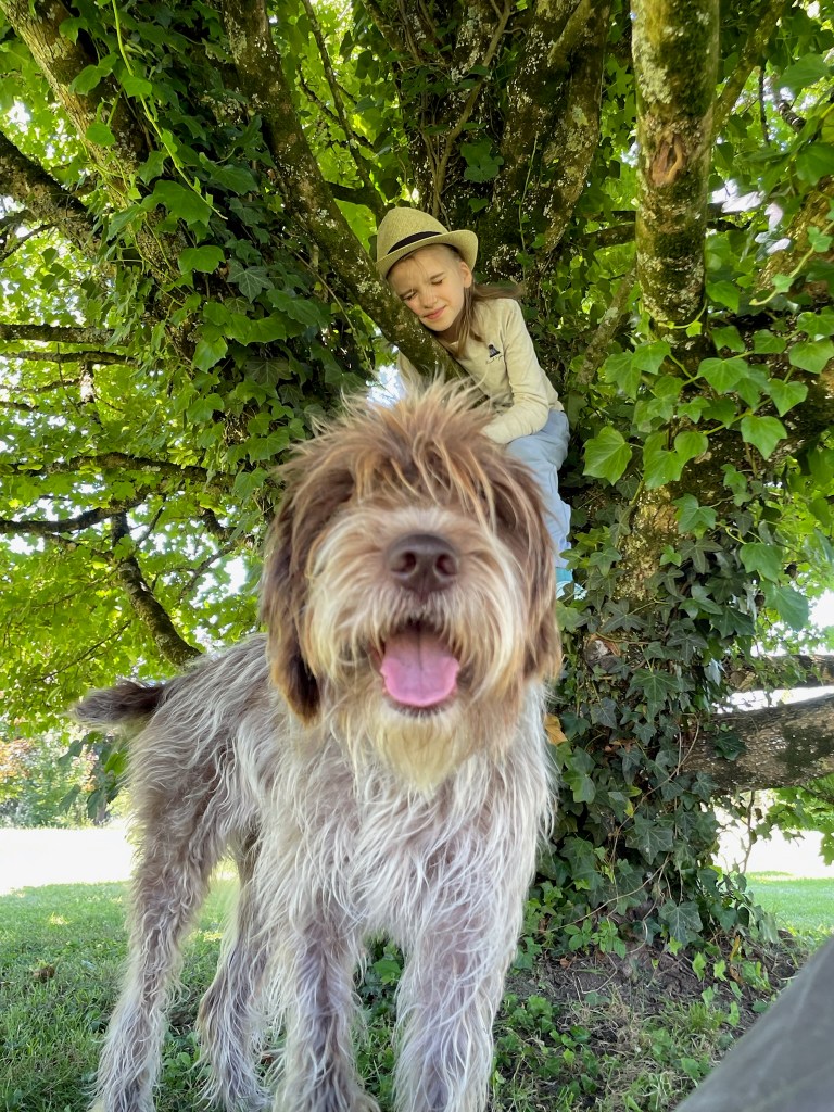Je suis sur un arbre avec Sweety. Sweety ne sait pas grimper aux arbres. Faut-être qu’on lui apprendra.