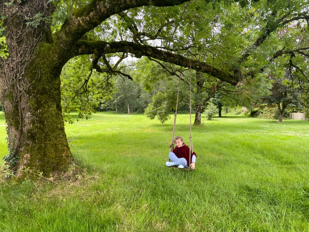 Au fond du jardin il y a une balançoire.