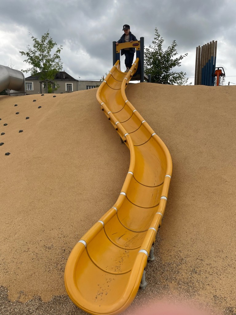 Je suis au-dessus d’un toboggan géant. Aussi géant que la tyrolienne de l’accrobranche.