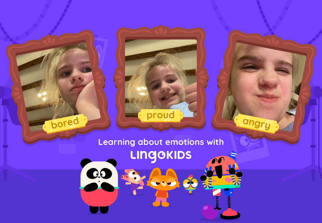 Sur ces photos, je suis dans Lingokids avec mes amis Cowy, Billy, Baby Bot, Elliot et Lisa.