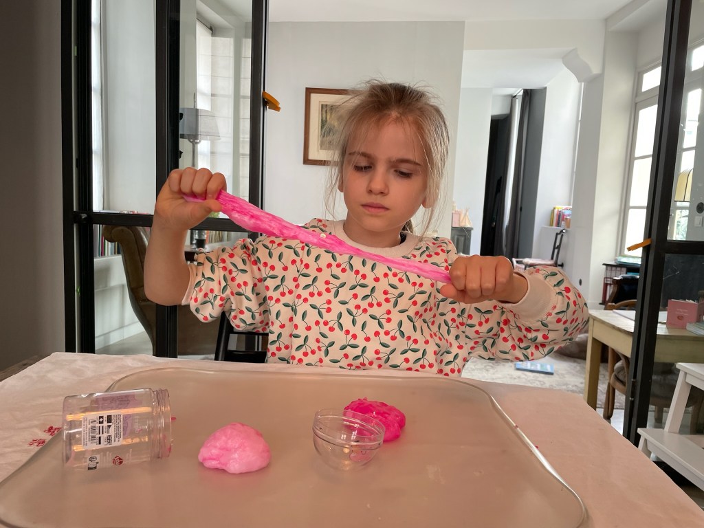 J’ai reçu un nouveau slime de chez Claire’s. Il sent bon et il s’étiiiiiiiire.