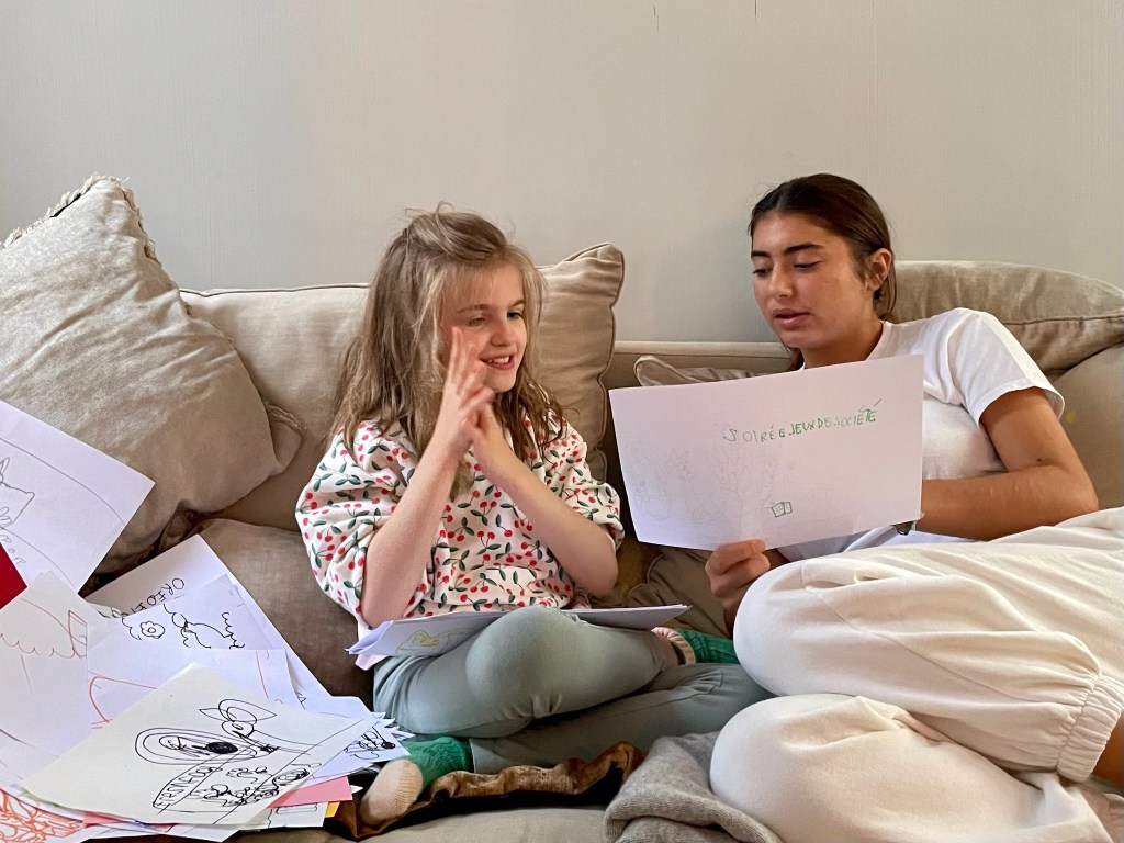 Jade est venue goûter pour manger mes bonnes crêpes et regarder mes dessins.