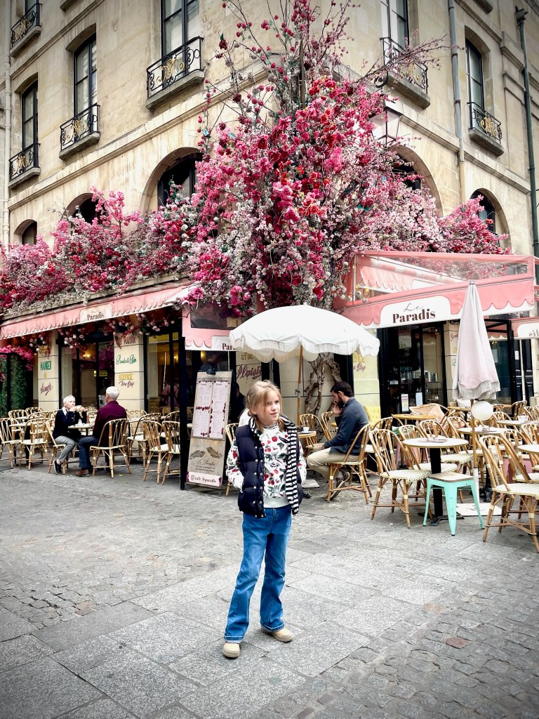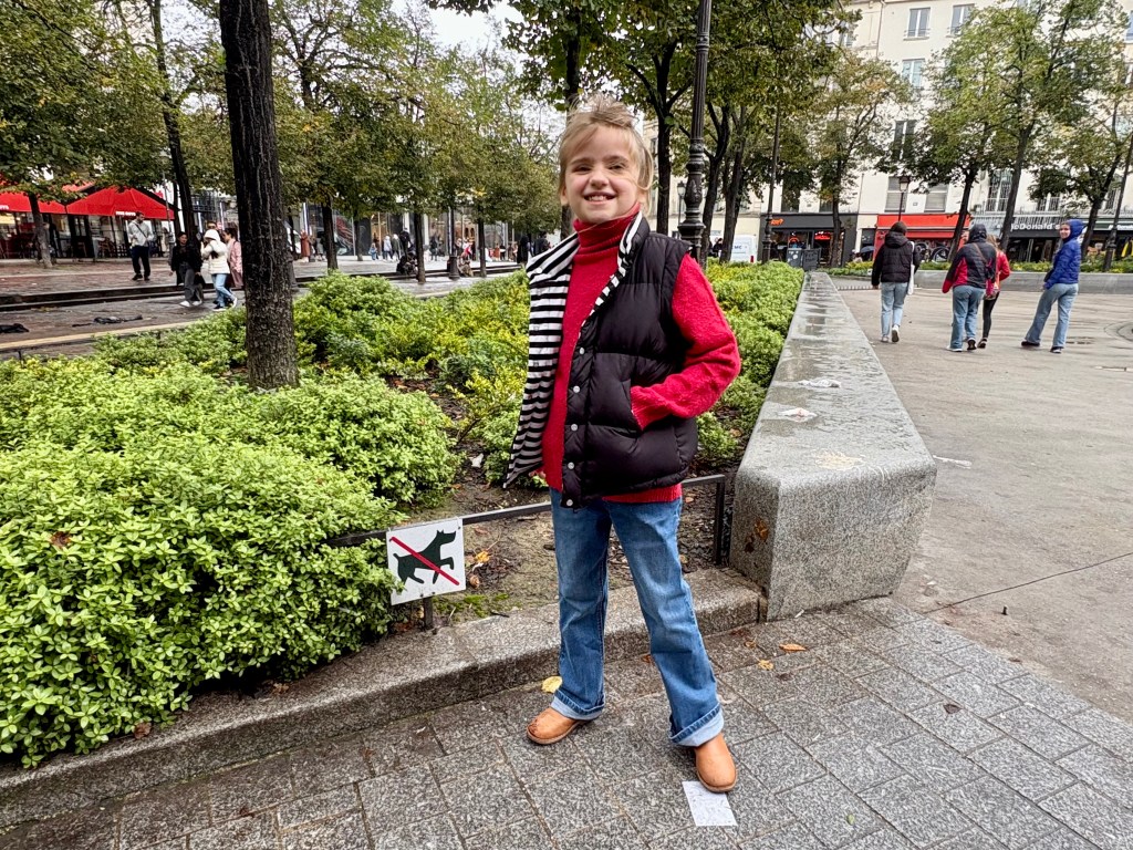 Nous avons remédié à cela la semaine dernière en nous rendant au musée Pompidou, dans la galerie pour enfants, mais aussi principalement dans la librairie du musée. Je suis toujours aussi impressionnée par sa perspicacité ; elle m’a notamment fait remarquer que les panneaux « interdit aux chiens » autour de la Fontaine des Innocents devraient plutôt signifier « interdit aux rhinocéros », étant donnée la similitude du pictogramme avec cet animal à cornes.