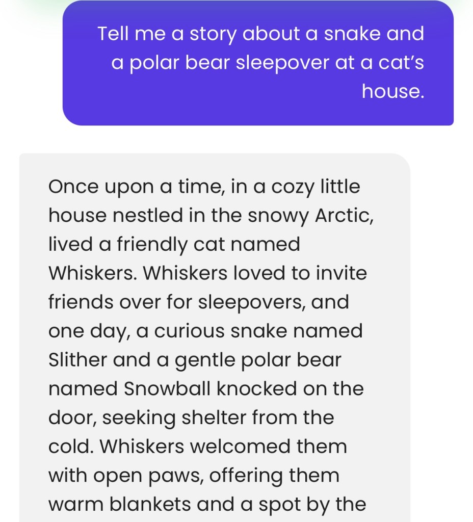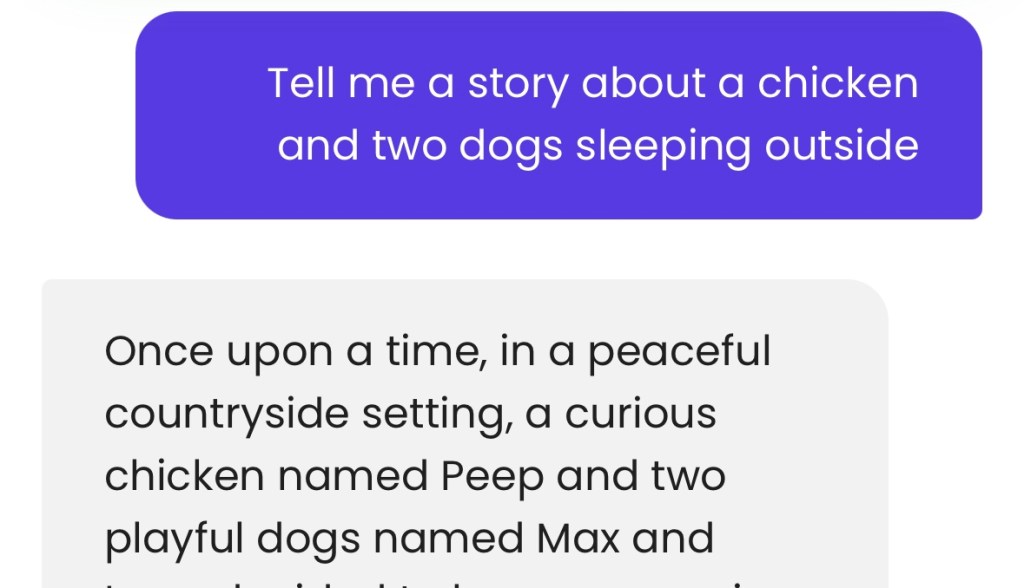 Evidemment avec l’arrivée des IA je soupçonne que ce phénomène va prendre de l’ampleur. J’ai cherché une IA adaptée aux enfants et suis tombée sur Pinwheel GPT. Après avoir créé 2 comptes, pour elle et moi, je lui ai donné mon téléphone et expliqué : « Voilà une intelligence avec laquelle tu peux discuter. Elle peut te renseigner, t’aider à réviser, te raconter des histoires… mais elle parle anglais. tu veux essayer ? »