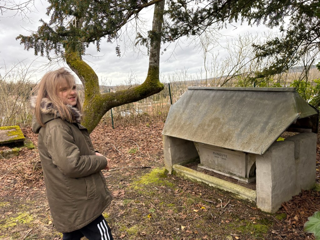 Je suis au cimetière des chiens près d’un château. Il y avait 5 chiens. Leurs noms sont : Louna, Hank, Samy, Rocky et Melissa.