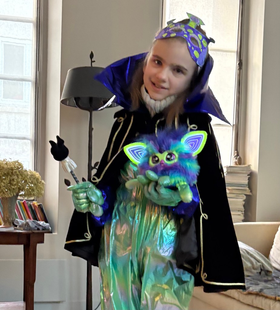 Pour le carnaval de l’école, je me suis déguisée en extra-terrestre avec un animal de compagnie extra-terrestre: un furby. J’ai une cape et une baguette magique car je suis un extra-terrestre magicien qui fait sortir un furie de son cartable car le thème du carnaval était « la magie ».
